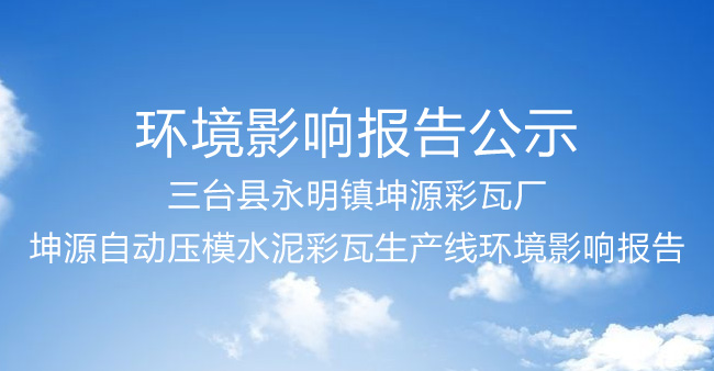 三臺(tái)縣永明鎮(zhèn)坤源彩瓦廠坤源自動(dòng)壓模水泥彩瓦生產(chǎn)線環(huán)境影響報(bào)告表全文信息公示