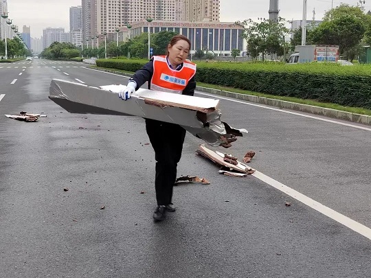 每年夏天臺(tái)風(fēng)天氣,暴雨過(guò)后,大量的泥沙、淤泥堆積在道路上,影響行人和車輛的通行。每當(dāng)這種時(shí)候禤艷輝總是身先士卒,帶領(lǐng)分公司一線工人排沙清道,第一時(shí)間將路面沙、泥、垃圾全部清掃干凈。